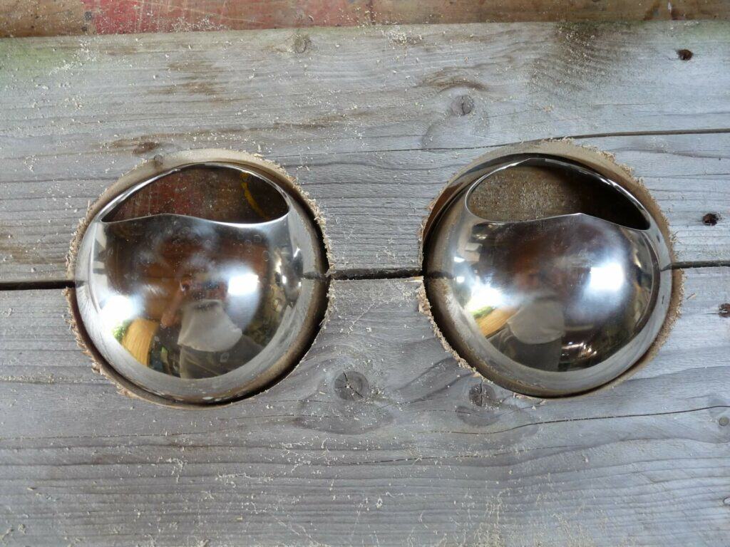 Le système de fixation : coupelles inox vissées directement dans les planches