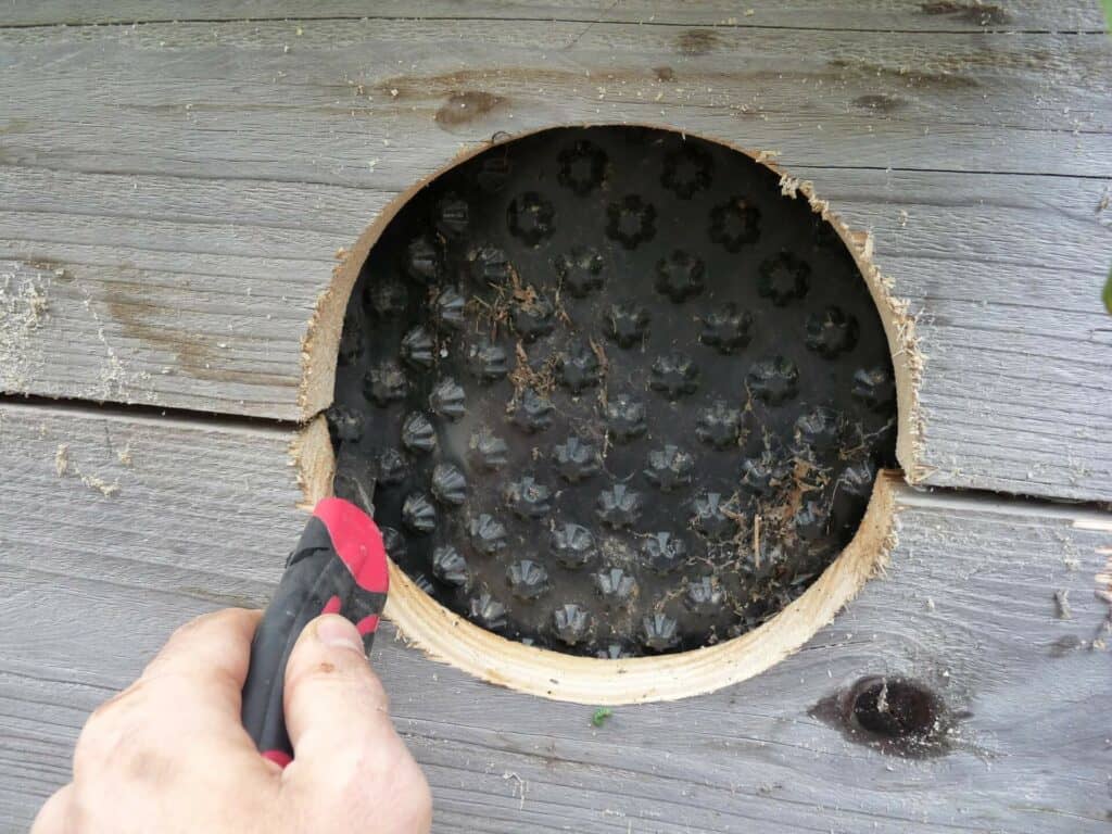 - Repérage : Tracez l’emplacement de vos poches sur les parois du bac. Espacez-les de 30-40 cm pour éviter qu’elles se gênent. Évitez de les placer trop bas (difficiles d’accès) ou trop haut (risque de renversement).