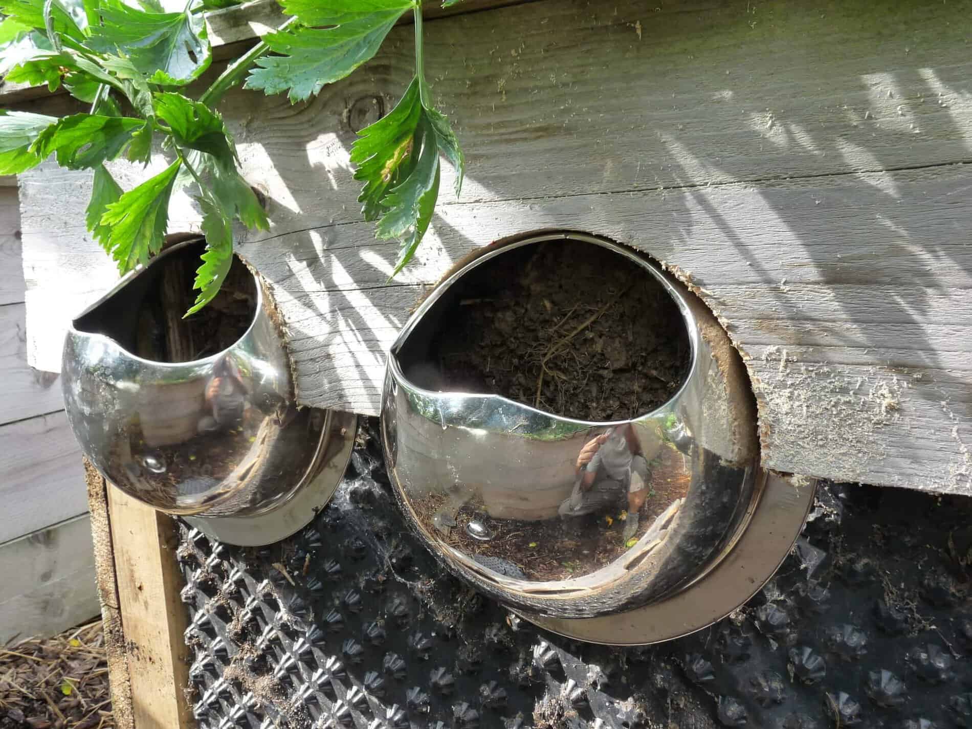 - Fixation solide : Pour les coupelles métalliques, percez 2-3 trous dans la partie arrière plate. Vissez directement dans la planche du potager avec des vis inox (résistance à l’humidité). Pour un bac en béton ou pierre, utilisez des chevilles adaptées.