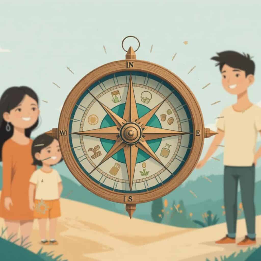 🧭 Un parcours guidé en 6 mois – La Boussole : un fil conducteur clair, avec 6 étapes progressives pour sécuriser ton alimentation, relocaliser tes achats, transformer le local, produire tes premiers légumes, impliquer tes proches et tester ton autonomie.